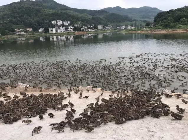 初到这如诗如画的贵州松桃,便被这一山一景,一人一物所吸引。但是更让人记忆犹新,为之惊叹的是苗王湖饲养的德国绿头野鸭,场景实在壮观。