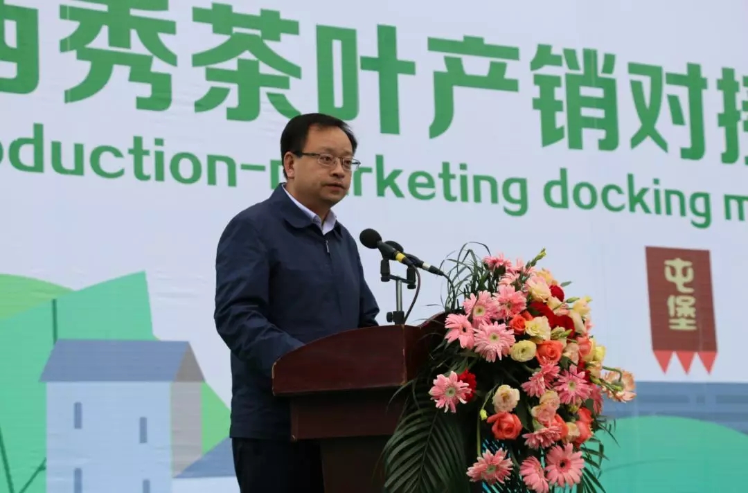 任小生书记向大家介绍了西秀区生态、历史、文化、交通、茶产业等优势,西秀区茶叶现有茶叶面积 22万亩,茶叶总产量 8783 吨,茶叶总价值 8.6 亿元,并表示在2019年西秀区要围绕决胜脱贫攻坚和乡村振兴战略,结合全域旅游示范区创建,完善健全区茶叶种植、管理、加工、品牌和市场营销等茶产业链体系建设。